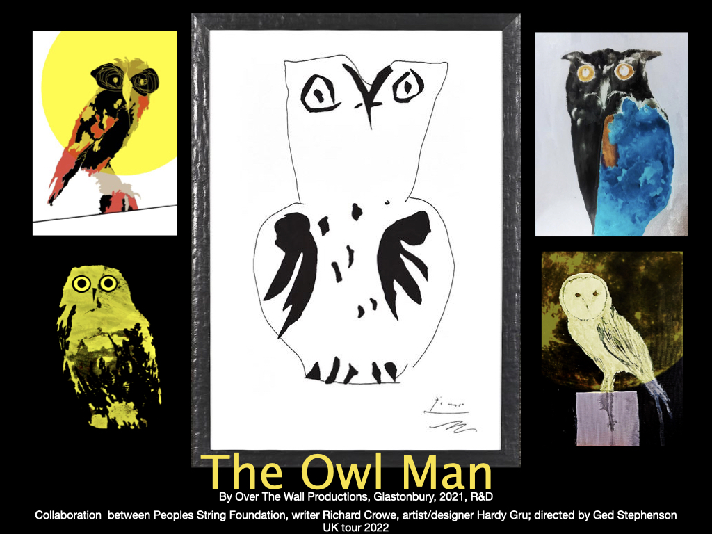 by Richard Crowe. With Peoples String Foundation and Ged Stephenson. Glastonbury 2021 (R&D). UK tour 2022/2023. Set, Puppet and Costume Designer/Artist on Stage
